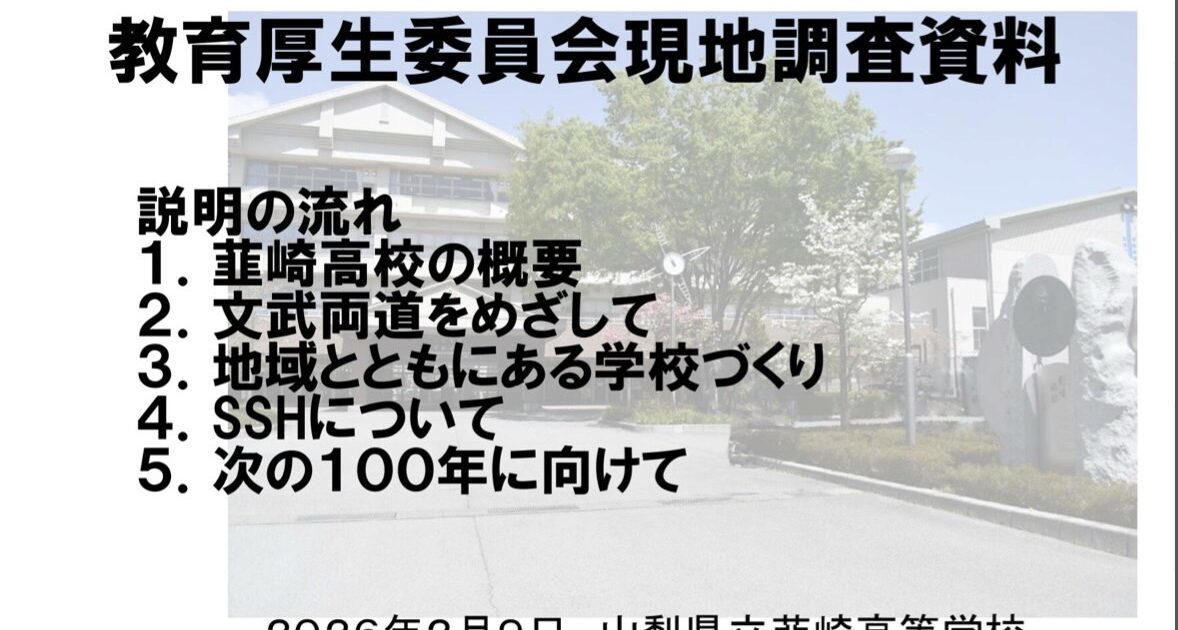 教育厚生委員会県内調査 県立韮崎高校:2026年2月9日