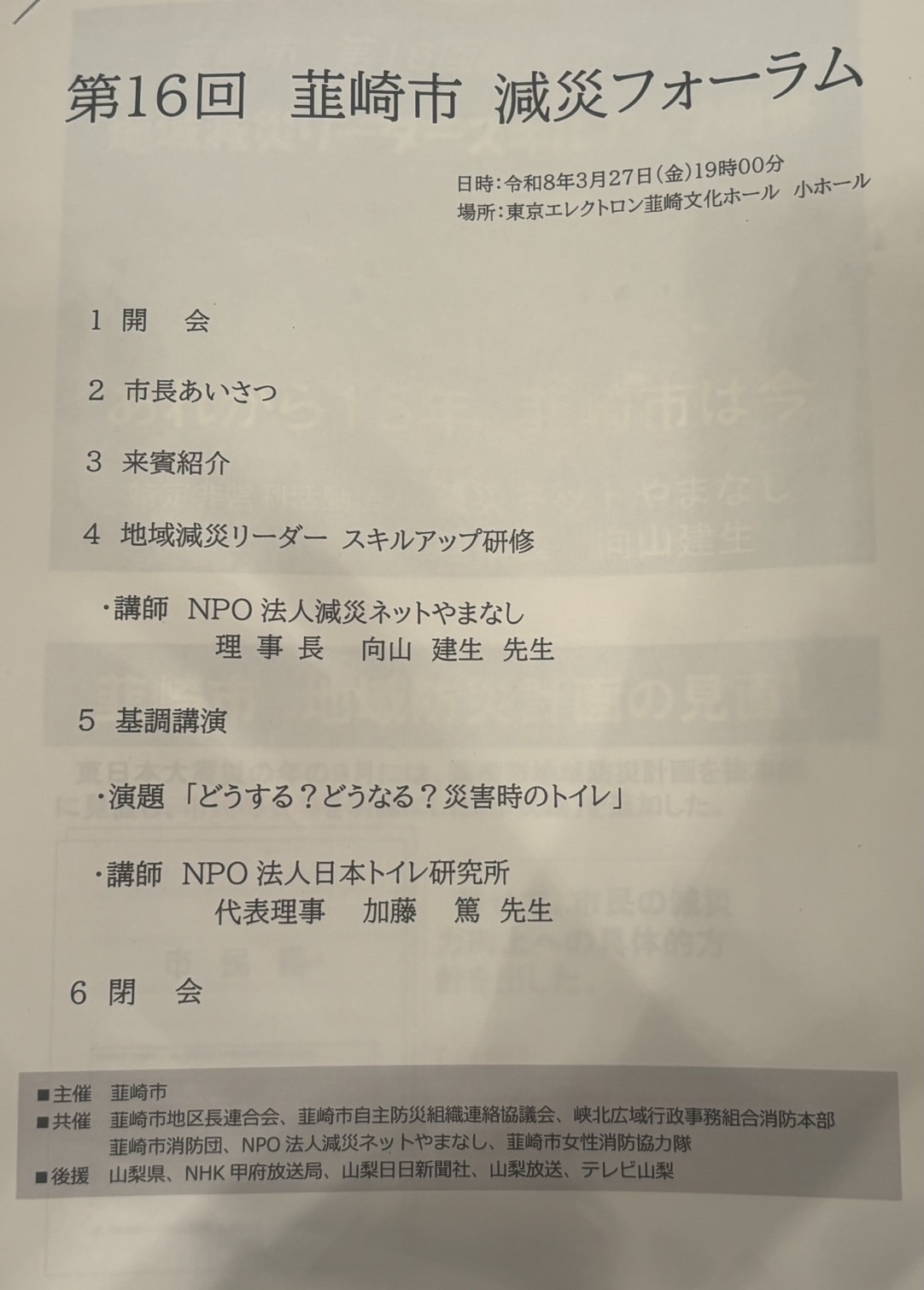 第16回韮崎市減災フォーラム:2026年3月27日